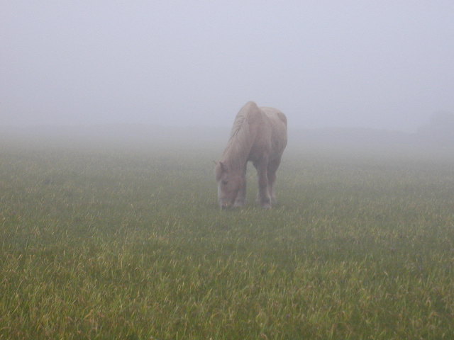 It was the easiest day for walking you could imagine: early mist gave way to fitful sunshine and a gentle breeze. It wasn't wet, it wasn't cold and it wasn't hot. From time to time, birds sang, and the air was often full of scent, the sweet smell of gorse or, in Marazion, wallflowers. There were flowers all over the place, magnolias, camellias (sp?), forsythia. Maybe that's no big deal, but it's a lot different from the Sheffield I left, still half in winter despite the warm weather. And there were the fields of daffodils... ...because flowers are part of this economy. Much of agriculture here is under the cosh, but operators are still willing to rent fields to farm daffodils. My bed and breakfasts hosts in Leedstown tonight, Tom and Joan Christophers, had plenty to say about the industry. Tom is a "retired" faarmer who still grows some veg.. He said how cattle farming had got much harder since BSE, and milk was only 16-17p a litre for the farmer. He told a story of a colleague who had a whole crop of lettuces rejected by a well known supermarket because they couldn't quite get to the required size in time. All that waste! Like South Yorkshire, Cornwall has been in recipt of European "objective one" money; but it's hard to spend it wisely. Anyway, I rush ahead. There are lots of old things on the moorlands at the extreme tip of England, really old. There are mounds, ancient villages, old mine workings, witnesses to change, witnesses to the world not being as it used to be. But do we yearn for what used to be? Did iron age people regret that their burial mounds were not being looked after properly any more? Some traditions continue: I passed two old fashioned gypsy caravans, still in use. Some people will still take the travelling life. Everywhere I go, the war is not far away, the flags, the headlines, the television. Culdrose helicopter base is a few miles from here, and ISTR two people from there were killed. Tragedy is with us wherever we go. Pictures from today...Horse in the mist - early morning near Land's End The ancient village Saint Michael's Mount |
