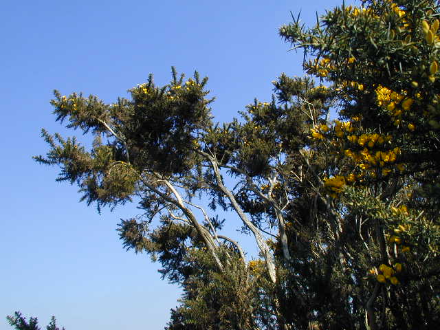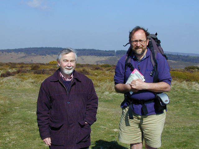 It was a light day today, only a ten mile stroll. But I feel now as if I'm really into the "meat" of England, and I've started using my interview process. I've had some other good conversations as well, so quite a full day. I met uk.religion.chrisitian newsgroup member Tim Whittingham on top of the Quantocks with the local rector. The Quantocks are a beautiful place, but a strange one for a church-related meeting. In the evening I was invited to one of the home groups of Westfield United Reformed Church. These kind people also put me up for the night. It was a cold, sunny day. In the part of the day when I had to dawdle, I lay down in the shelter of some gorse out of the easterly breeze and in the sun. It was like summer, with winter five feet away. Pictures from today...Tim Whittingham and Richard Parker Richard Parker and self Gorse viewed from a recumbent position |