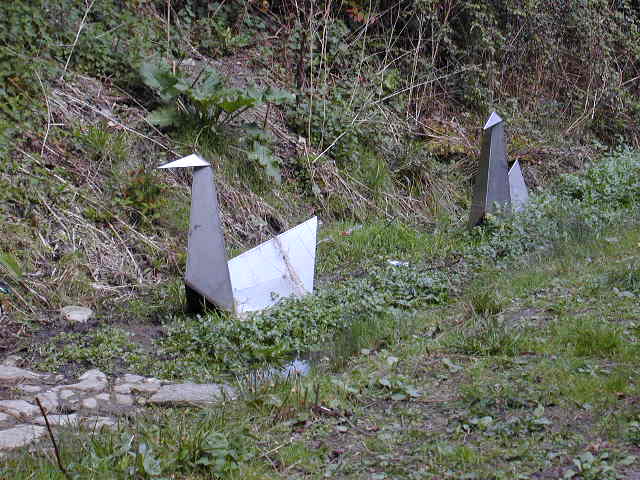 Question for the day (suggested by Westfield URC, Bridgwater)... How many Christians does it take to change a door handle? One possible answer ... "16 - one for the screwdriver, ten for the committee and five to stay at home and wait to be visited." - What is your answer? It was another sunny, chilly day, with a lot of walking this time on the flat straight Levels roads, which were deserted except for a couple of white vans and a party of Cantonese students on bikes. A number of people in Bridgwater work at Hinkley Point nuclear power stations and a few work at the cellophane factory. Apparently they have cleaned up their act and Bridgwater is nowhere near as smelly as it used to be. The Cat Fancy headquarters and the horse grave were a reminder to me of the relationship between people and the animal world. It was good to be accompanied for part of the walk by an old colleague from Mansfield days. Steve also invited me to an evening ecumenical housegroup. It was a good meeting. There wasn't time to use the "process", but some of the group seemed more interested in changes they could make than changes that had happened. Interesting, and hopeful. I'm staying tonight near Axbridge. A number of people are out of town at the moment, visiting the memorial in Switzerland to people who died in an aeroplane crash there, most of whom were from Axbridge and neighbouring villages. It is thirty years tomorrow since the life of this small community was shattered in this way. Pictures from today...The Cat Fancy Horse grave Stainless origami on the NCN3 Levels road Axbridge |