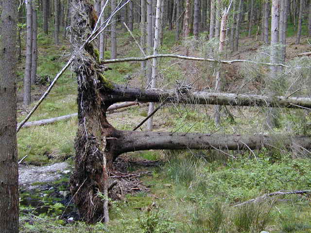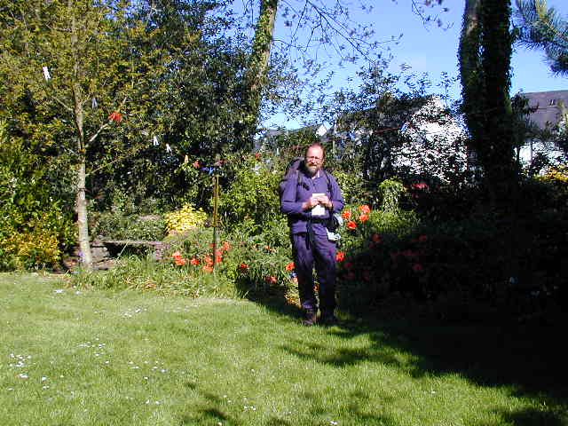 The address of the place I stay tonight is ... "by Drymen" ... so, all that walking and I'm still in the same place. However I am now on the banks of Loch Lomond... which has its compensations. It was indeed a hard day, not particularly far, but with quite a few short ups and downs which may not even have registered in my planning, and a longish one round Conic Hill, which unfortunately I got excited about and went up too quick. Early in the day I was about half way in the range of walking speed, but by the end I was once again slowest. Lots of people round here are impressively fit. Today has been the Day Of The Walking Stick. I thought I might need one to steady myself on the slithery bits tomorrow, so bought one in Drymen. Never having used a stick before, I practised on the descent from Conic Hill, and liked the idea so much that I used it for most of the rest of the day. It gave another option for keeping dodgy toes out of trouble. And it reminded me of Gandhi - not that anyone would ever confuse the two of us! Sometimes I would just "mark", other times I put real weight on it. The sensation seemed to me a bit like punting. The stick, of course, opens up a whole new land of metaphors. Yes, they do mean something, it's just that we've got out of the habit of travelling with an oaken staff. "My faith is like an American Express Card, the traveller's well loved aid" doesn't have quite the same ring to it. Fragments of the day... The damp forest path steaming in the morning sun, exiting the forest into the sunshine and the sound of larks, litter pickers keeping the West Highland Way tidy, a cuckoo, rock like pudding, with fairly substantial rocks inside it (or was it just concrete?), primroses (again!). Pictures from today...Me with poppies in the garden of the B&B in Drymen Distant highlands Tadpoles in Garadbhan Forest Showers and Loch Lomond Ben Lomond, the most southerly Munro - my bag will be empty this trip Twockers come to the Bonnie, Bonnie Banks Trees felled by a gale Rowardennan Memorial and a bit of ?Arrochar Alps? |