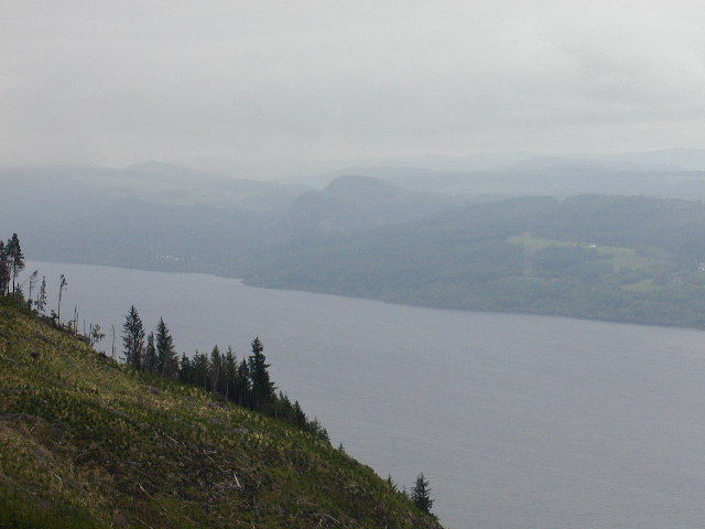 The persistence of yellow flowers... I'm still seeing primroses after two months. And I had not realised there was so much gorse in Britain. Nevertheless, I think on the whole that the spring is beating me on the journey northwards. Anyway, today was a good day, because colleague Chris and daughter Hannah walked with me all the way. And when they weren't chatting with me, they could chat with each other. Hannah walked ten miles for the first time in her life, and climbed well over 300m into the bargain. Welcome to the walking Warwickers, Hannah! With three pairs of eyes, we saw more things, like some fierce wood ants for instance. Only Nessie failed to oblige with an appearance. It seems that several thousand local people have made sworn statements saying they've seen the monster. Well done them! Each statement is probably worth a couple of thousand pounds a year to the local economy. It's not everywhere you see such public spiritedness. Because Nessie, stunning views of the loch, Urquhart Castle, little craft workshops... tourism is practically the only show in town. A large proportion of houses here are B&B's. And Drumnadrochit must be doing reasonably OK on it, because food prices, for what you get, are quite expensive. All very well, but what happens in winter? Service a few sheep an cut down a few trees? Judging by the accents, some of the labour comes for the season, like the antipodeans in the west highlands. A number of B&B proprietors may be retired and have enough to tide themselves over. I'm really just speculating though. It would be good to come in the rain-lashed dead of winter, just to see. Pictures from today...The family at the youth hostel by Loch Ness Loch Ness from high - no monster visible |