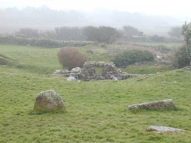 It was the easiest day for walking you could imagine: early mist gave way to fitful sunshine and a gentle breeze. It wasn't wet, it wasn't cold and it wasn't hot. From time to time, birds sang, and the air was often full of scent, the sweet smell of gorse or, in Marazion, wallflowers. There were flowers all over the place, magnolias, camellias (sp?), forsythia. Maybe that's no big deal, but it's a lot different from the Sheffield I left, still half in winter despite the warm weather. And there were the fields of daffodils... ...because flowers are part of this economy. Much of agriculture here is under the cosh, but operators are still willing to rent fields to farm daffodils. My bed and breakfasts hosts in Leedstown tonight, Tom and Joan Christophers, had plenty to say about the industry. Tom is a "retired" faarmer who still grows some veg.. He said how cattle farming had got much harder since BSE, and milk was only 16-17p a litre for the farmer. He told a story of a colleague who had a whole crop of lettuces rejected by a well known supermarket because they couldn't quite get to the required size in time. All that waste! Like South Yorkshire, Cornwall has been in recipt of European "objective one" money; but it's hard to spend it wisely. Anyway, I rush ahead. There are lots of old things on the moorlands at the extreme tip of England, really old. There are mounds, ancient villages, old mine workings, witnesses to change, witnesses to the world not being as it used to be. But do we yearn for what used to be? Did iron age people regret that their burial mounds were not being looked after properly any more? Some traditions continue: I passed two old fashioned gypsy caravans, still in use. Some people will still take the travelling life. Everywhere I go, the war is not far away, the flags, the headlines, the television. Culdrose helicopter base is a few miles from here, and ISTR two people from there were killed. Tragedy is with us wherever we go. Pictures from today...Horse in the mist - early morning near Land's End The ancient village Saint Michael's Mount |