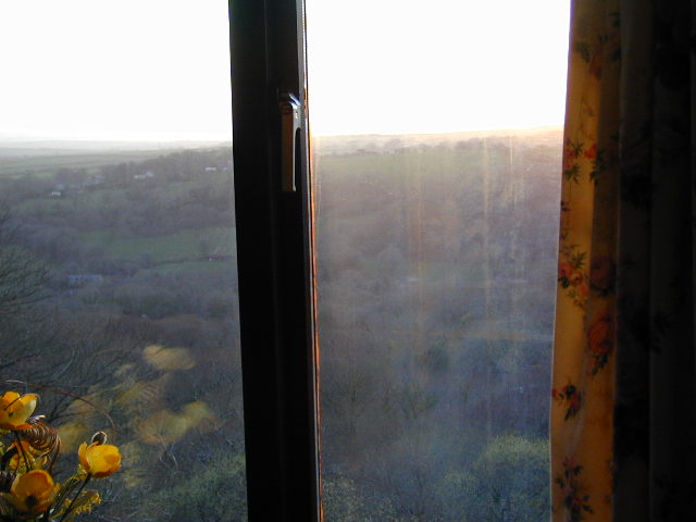 Thought for the day; What do those fish make of the candle? What do they make of any of it, really? If I brought my bicycle in and parked it opposite the tank, would they eye it covetously? Except I haven't got my bicycle because I'm walking. And walking is different from cycling: when I cycle, I worry about the mechanical integrity of my bike, and when I' walking I worry about the mechanical integrity of my body. I woke up in a sweat at midnight last night, wondering if my toe had got worse. Well maybe it had, but today I braced it with some sticky tape, and got through a long day reasonably well with some boot adjustments. The good moments are beginning to come, despite (maybe beceause of) a day that was wet and windy, the kind of day when you put everything in the bag, get your head down and just go. Good moments;- walking in the wind, singing snatches of Bessie Smith to the thin air; the relief of the Camel Trail after a long day on tarmac; walking back from the pub in the emergent evening sunshine, with the majority of a colossal meal inside and a familiar tightness of the calves that says you've done some good work today. Sure, the bad moments will come too, but they can keep for another day. Walker's log;- St Austell Urban Village regeneration project on the site of an old rubber works. I hope it works. The Eden Project - we've all heard the story of its success in regenerating an economy that lost many china clay jobs. The fish and chip restaurant in Bodmin. When I sat down, there was an elderly woman sitting at the back with a threequarter eaten sandwich and a newspaper. She was still there when I left. What was her story? It wasn't my business to know. The view from the place I'm staying tonight. It always cheers me up when a pretty young woman smiles at me (sad old individual that I am) - except this occasion in a greengrocer's in Bodmin. Because the person who went before me wasn't accorded the same friendliness. I had the disquieting feeling that it was because the person in front of me's face wasn't white. I can't say I noticed any April fools or jolly pranks today. Maybe the world has got too srerious. Pictures from today...eden project more eden project from the window of the B&B |
