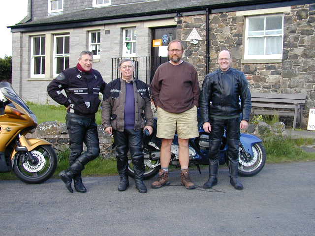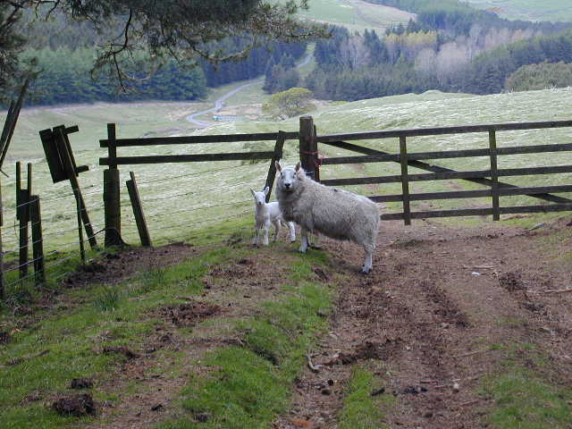 This was a long day, though made less long than it might have been by walking to the end of the tarred road at Ewartly Shank yesterday, and getting a lift back there this morning. The few showers were not a problem and visibility was good throughout. This was the third crossing of the Pennine Way as I reached the ridge of the Cheviots. That was also the point of entry into Scotland, and I permitted myself a subdued celebration. Somewhere about this time, about 500m up, some rain in a shower fell with tiny bits of graupelly ice in the cores of the drops. This is my only encounter with frozen precipitation so far. Not bad going. The warden at the youth hostel congratulated me on getting as far as Scotland. It must be a habit with him, because the hostel lies at the end of the Pennine Way. I didn't really feel like being congratulated - see footnote. He stocks Traidcraft stuff on his own initiative, there are energy saving bulbs, and recycling for tins, bottles and plastic bags. Later the URC bikers came, on the way back from their End To End Via The Synods jaunt. Oddly, I'm glad I'm doing it this way. Footnote... I don't really understand why after a gentle day yesterday in comfortable new boots, my toe hurt more. Anyway, by reverting to manufacturer's insoles and repacking, I got me here. Tomorrow is a short day, a chance to recover, the last for a while. I now also have a grazed elbow after getting my bootlaces caught in the door. This must be a contender for the world's most embarrassing accident. Pictures from today...Waterfall Motorbiker enjoying the Salters' Road I'm ambivalent about this Ewe and lamb TV aerial, Cocklawfoot Tree Of The Day - I must be in Scotland With the URC bikers on their End To End Via The Synods journey |
