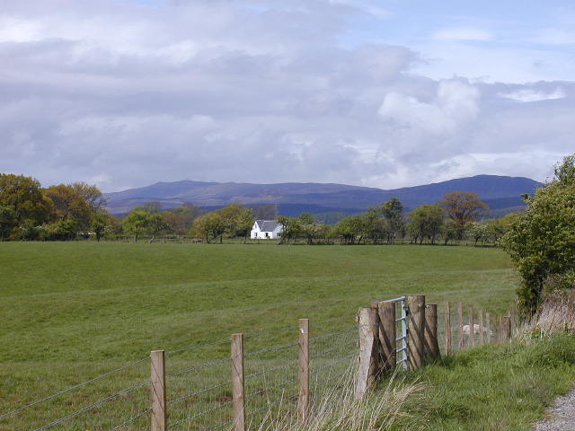 Warning ... About half way through today I joined the West Highland Way. Soon I shall be passing through some remote places, and from now on diaries may appear a day or two late because of signal difficulties. Perhaps it was because I haven't mended anybody's computer for two months, but midway through the morning I developed an irresistible urge to improve things. I first became aware of this at the pharmacy in Strathblane, which had a loose door handle. I whipped out my multifunction knife and fixed it before (AFAIK) anybody noticed. Buoyed up by this experience, and a good send off from this morning's B&B, I now had sky-high confidence in my ability to be a member of the human race. I walked into a coffee shop, had some apple pie and coffee, and suggested to the proprietress that "brocolli" on the specials board might be spelt "broccoli" (not that I'm sure of this anyway). This turned out to be a bad move. Pride cometh before a fall. All the character defects which my nearest and dearest tolerate are not so likeable in a public setting. Some of the surfaces today were not so good and my left foot hurt a bit. I wondered why my feet had never got very much worse since the first few days nor very much better. I thought the answer was pain. When my feet are in danger, pain comes and makes me alter my gait, so preventing me from doing further damage. Thank God for pain. Nobody, of course, could thank God for pain gone wrong, or cancer pain, or pain where there is no possibility of removing the pain-inducing stimulus. But I thank God for this pain, which has preserved my feet thus far. I think there may be more to this sermon, which would be about social pain, and people needing people, and drug abuse, but I'll leave that for another day. There are lots of walkers on the West Highland Way, so far all going the same way as I am. I watched the little yellow "Vibram" labels on the bottoms of their boots disappear ahead of me, and envied them for the rigidity of their soles on this stony track. But for them it's only the first day, for me, it's the 52nd. Time will tell. For part of the way, two of them chatted with me, a welcome bit of company. I reckon we all need a certain amount of company and a certain amount of solitude, and although those certain amounts are different for each of us, we are unhappy if we are too far away from our personal balance. How's that for an unsubstantiated assertion? It sounds as if the walker in the other room in this B&B has just knocked down the shower curtain, making it a 100% record for tonight's guests. Pictures from today...On the West Highland Way - distant hills beckon. Actually I've already been closer to other hills |