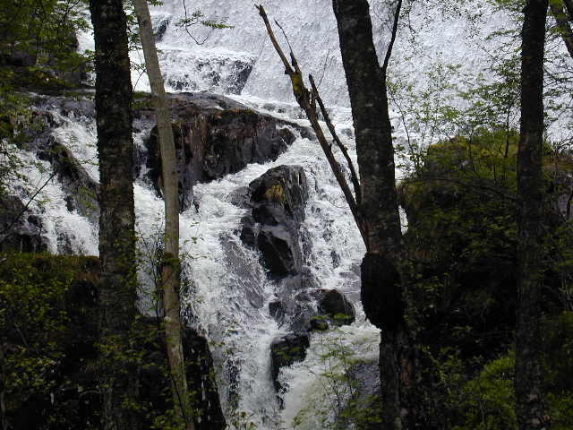 Yesterday evening I went for a little walk in the dusk between showers, and saw a massive steel bridge on the main road, which looked tiny in this landscape. Later some wild deer ran across in front of me. It was that kind of place. Today's stage was short, beautiful and not without effort. Once again, the cohort passed and greeted and re-passed. I'm thinking of going to church in the village tomorrow morning, which will set me back a couple of hours. As a consequence, I'll probably not see them again, and I think I shall miss them and that experience. Today, as it happens, I met the first fellow end to enders of the whole trip. They will end up at the windswept northern tip four days after me. I arrived in Kinlochleven on Saturday afternoon. A fellow walker remarked on the lack of open shops. There's been a bridge at Ballachulish for some time now, and it doesn't look as through there's a great deal of through traffic in the village. There's a place here where there used to be an aluminium smelter, of which just the hydroelectric power station is now functioning. The site now has a brewery, and they're building a business park with the help of Objective One money. But if there's no job in a place like this, it's a long bus ride to get to one. No doubt tourism hots up in the summer months and amounts to more than a score of wet and hungry walkers. Several of us bought stuff in the Co-op. God bless these village Co-ops! They are everywhere the big boys won't go. And if tourists do come to Kinlochleven, they'll find a brilliant place. On the way back from the chippie, I went round a small network of paths behind the Episcopalian Church, and saw the Grey Mares waterfall, a proper fall, awesome. Then I went up and sat on a bench overlooking the loch and the mountains. I didn't have the camera: you'll just have to believe me. Earlier, I had found the path that goes down to the lochside, slipway and jetty. What a place! Why isn't the whole world coming here? There are footpath signs here, Spean Bridge, 18 miles, Corrour Station, 15 miles. That's a whole day's walk. If any footpaths deserve to be called serious, they do. Pictures from today...Buachaille Etive Mor again Waterfall Kinlochleven including the site of the former aluminium smelter CND in a high field Loch Leven |