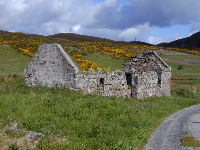The early part of the day was beautiful, sun sea, quiet back lanes, ?yellow irises? There were a number of ruined dwellings to tell the story of depopulation, but also some bigger, more modern ones. Things are never simple. In time, the landscape became more how I had imagined it for the harsh northern land where Norse and Celtic meet. There were marginal land, sheep, peat stacks for fires. Not that the weather was harsh today ... some sunshine and one attempted shower. The A9 was quiet enough for me to hear the crash barriers going "ting" as they expanded and contracted with passing sunny intervals. I met a couple of JOGLEers walking for Leukaemia Research. They had a punishing schedule ahead of them. I passed a plaque, "The Grey Hen's Well/Erected by/the Duke of Portland/1834". The aristocracy could make things happen. Maybe only they could make things happen. Could any of us have coped with such a society? And are we still living with the consequences, or is it even continuing in some places, as it seems to in some aspects in Northumberland? There was a roadside shop in the middle of nowhere and I went in for a snack. The bananas were on the counter. Apparently they do a steady trade in bananas and Lucozade for End to End travellers (mostly cyclists I assume). One of the travellers had been an 80 year old man who walked with a trolley for his stuff ... one way for one charity, then back again for another charity. In winter, I learned, the road can be closed by snow for long periods. It was not unknown to go two weeks without seeing a car. I saw a cyclist grinding up the hill out of Dunbeath in a bottom gear that was clearly too high. I wouldn't give much for his chances of getting to Cornwall unless he changes his transmission. Nice trailer, though. Two days to go now ... long one tomorrow, but I can't see any reason why it should be a problem (famous last words). At last I shall get off the A9 and onto a yellow road into the interior. Pictures from today...Ruined dwelling Electric bothy or herb store? All I could find out about this church by looking... ...was this The road ahead - back lane Roadside rhubarb - apparently it grows like a weed here - pass the custard someone Tent life |